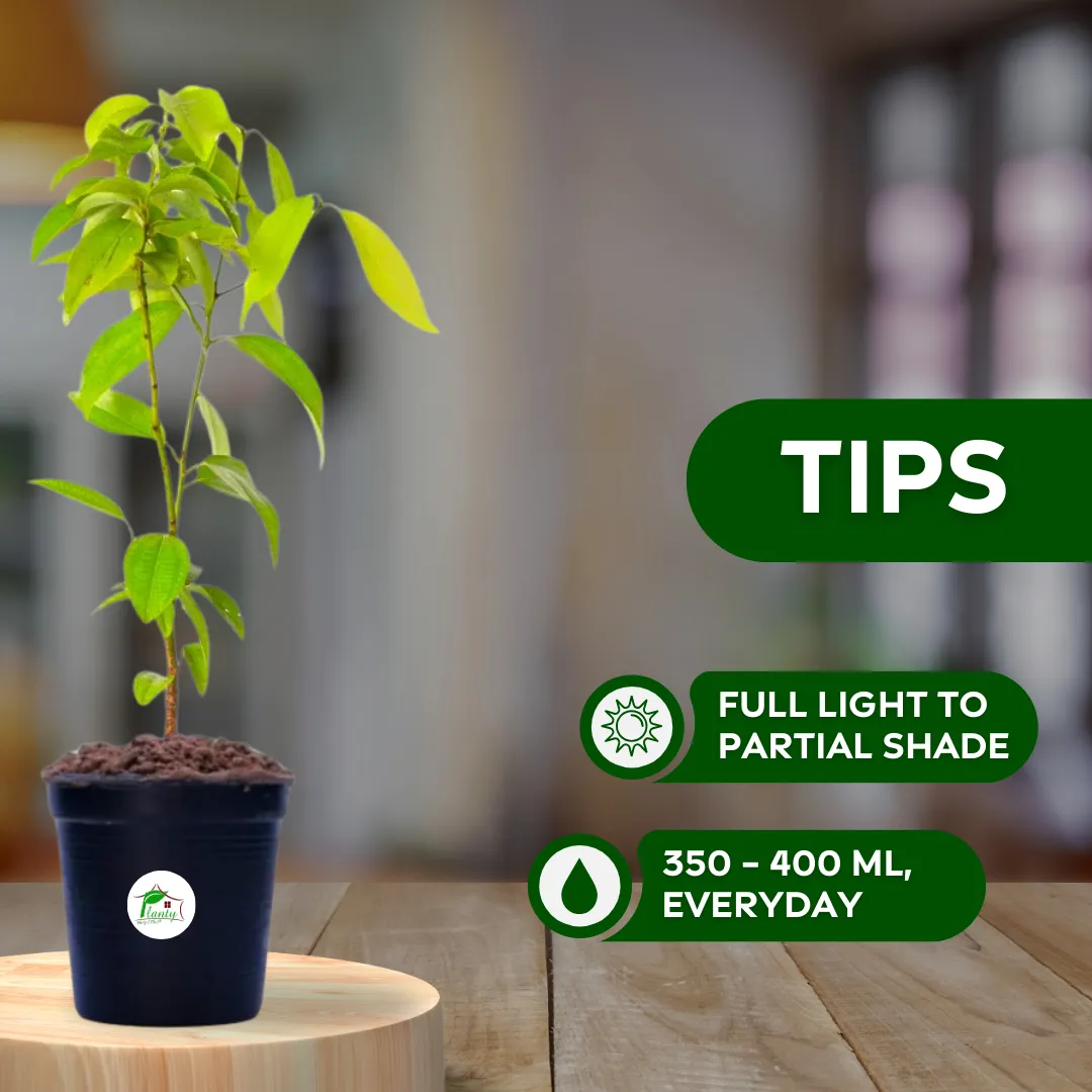 Daal Chini, or Cinnamon Plant, is a tropical tree renowned for its flavorful bark used as a spice. With its glossy leaves and small, fragrant flowers, this plant is a delightful addition to herb gardens or as a standalone tree.
