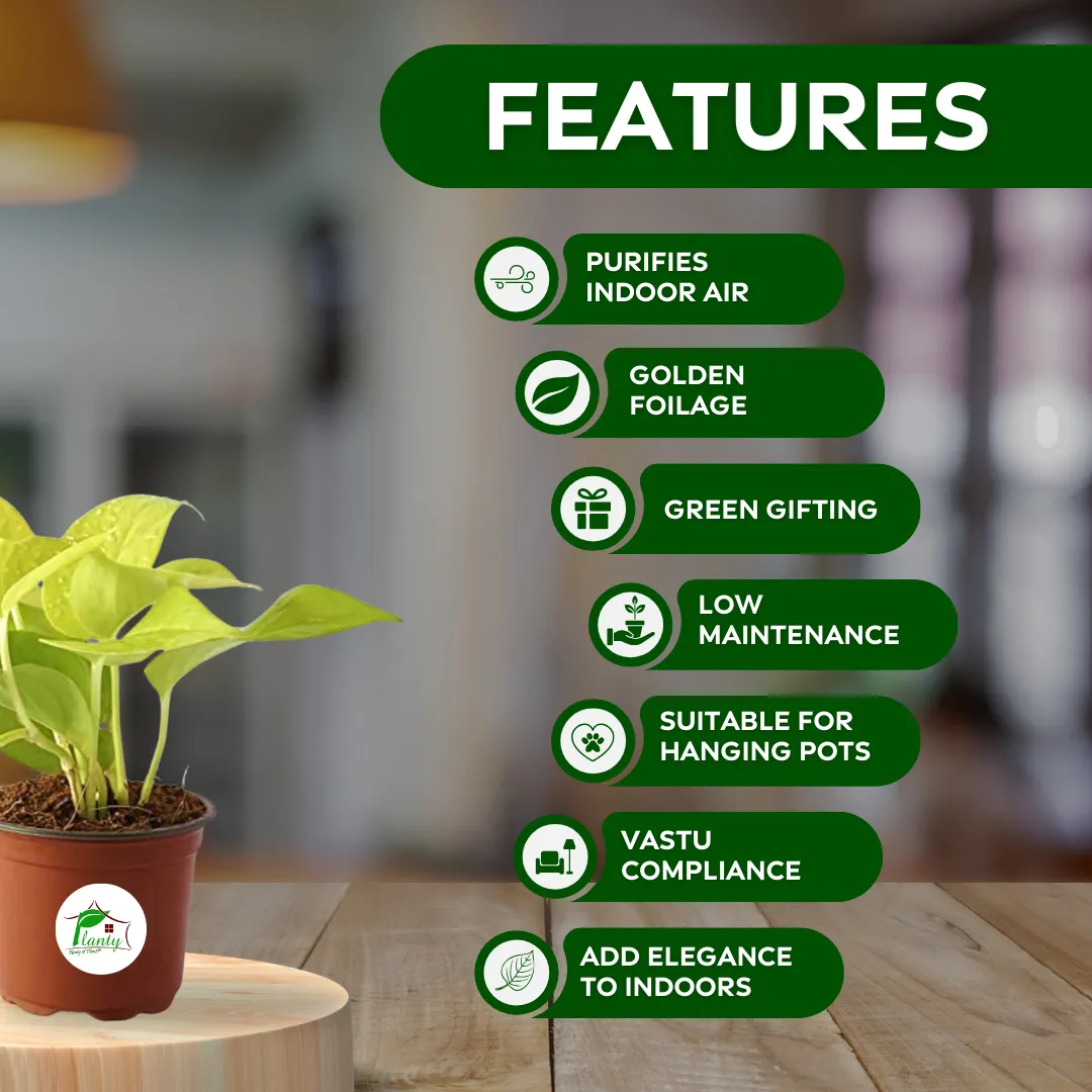 The Golden Money Plant is a beloved variety of pothos known for its heart-shaped, green leaves adorned with streaks of gold. Native to Southeast Asia, it is celebrated for its air-purifying properties and its ability to grow in diverse conditions. This plant symbolizes wealth and prosperity, making it a popular choice in homes and offices. Its cascading growth habit makes it ideal for hanging baskets or as a trailing plant on shelves.