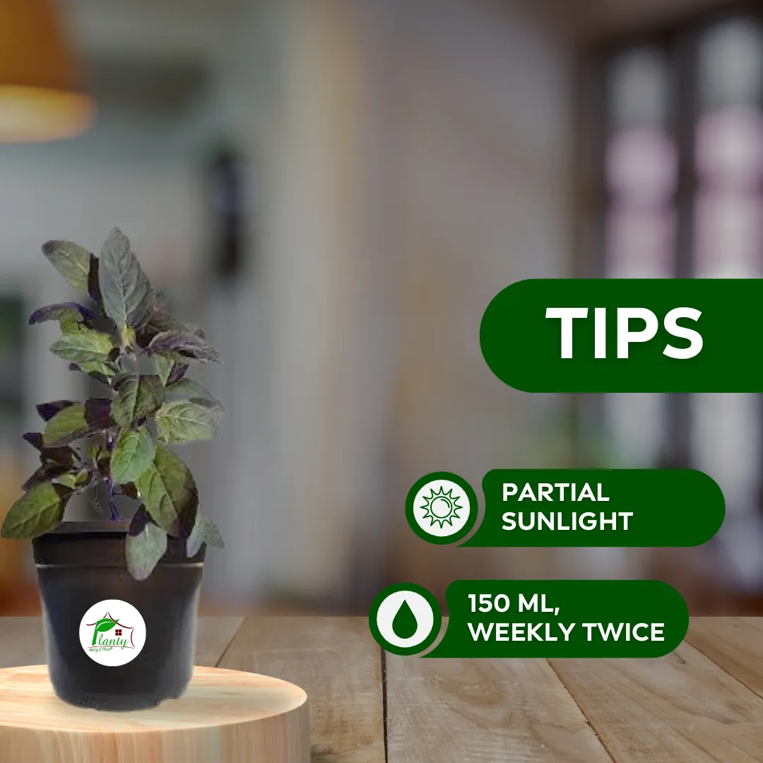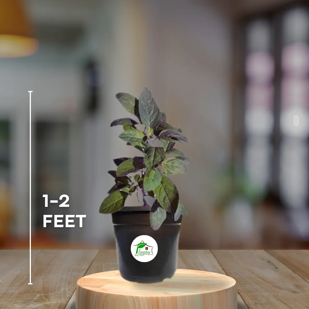 Shama Tulsi, also known as Purple Leaf Tulsi, is a sacred herb with purple-tinged leaves and a distinct aroma. It’s prized for its potent medicinal properties and is often grown in Indian households for spiritual and health benefits. Shama Tulsi is resilient and thrives in various conditions, making it an essential plant for every home.